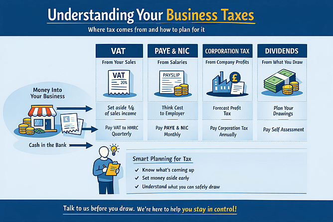 A short conversation at the right time can give you clarity on what you can take, what you need to keep back, and what is coming next. That is what turns tax from a surprise into something manageable.
